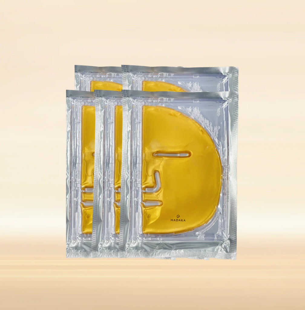 The ultimate collagen boosting face mask for all skin types with HYALURONIC ACID + VITAMIN A + COLLAGEN Indulge in Pure Luxury with our 24KT Gold Face Mask - Reveal Hydrated, Brightened, and Glowing Skin! Elevate your skincare routine with our decadent 24KT Gold Face Mask. Uniquely formulated with potent ingredients and a luxurious hydrogel formulation, this mask is designed to deeply hydrate, brighten, and revitalize your skin, leaving you with a radiant and luminous complexion. Enriched with a powerful blend of Hyaluronic Acid, Collagen, and Vitamin A, our 24KT Gold Face Mask delivers an intense surge of moisture and nourishment to your skin. Hyaluronic Acid works to restore hydration, plumping the skin and reducing the appearance of fine lines and wrinkles. Collagen helps improve elasticity and firmness, while Vitamin A promotes a healthy and youthful complexion. Featuring a luxurious hydrogel formulation, it effortlessly adheres to your skin, optimizing the absorption of its pot